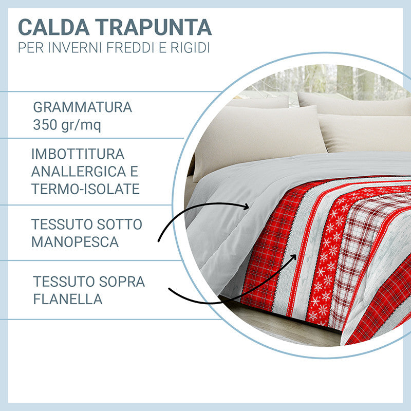Trapunta invernale in tessuto di calda e morbida flanella – Imbottitura 350 gr/mq termoisolante – RENNE