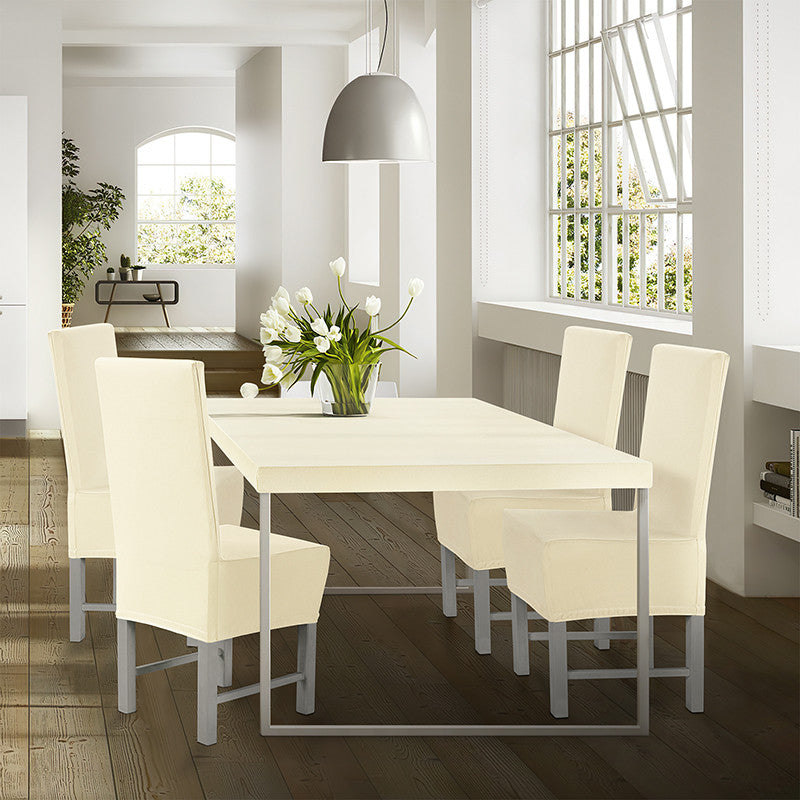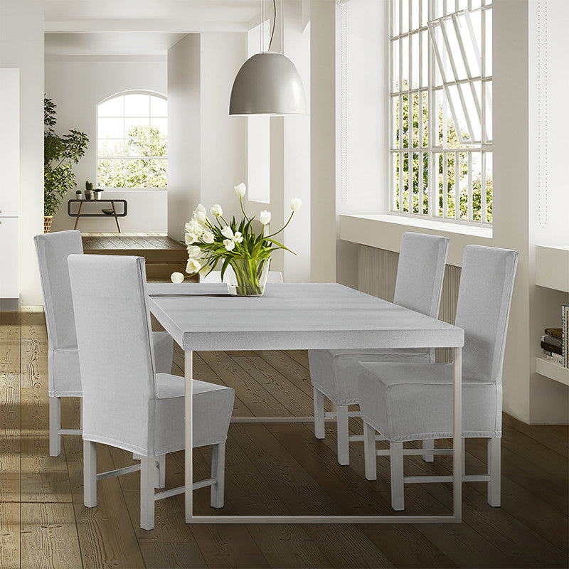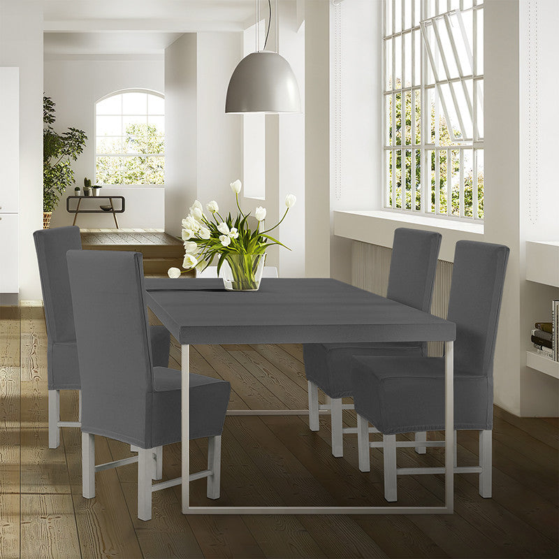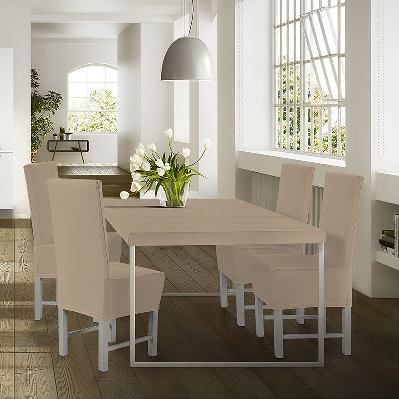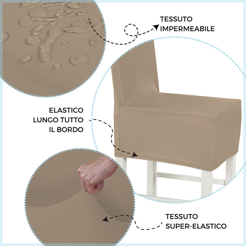Adatto a tutte le sedie con altezza dello schienale da 40 a 60cm e seduta da 35 a 50 cm sia in larghezza che in profondità. Grazie al trattamento ANTIMACCHIA la tua sedia sarà protetta da schizzi di cibo e bevande, mentre grazie alla particolare composizione SUPERELASTICA del tessuto vestirai le tue sedie con facilità ed eleganza.