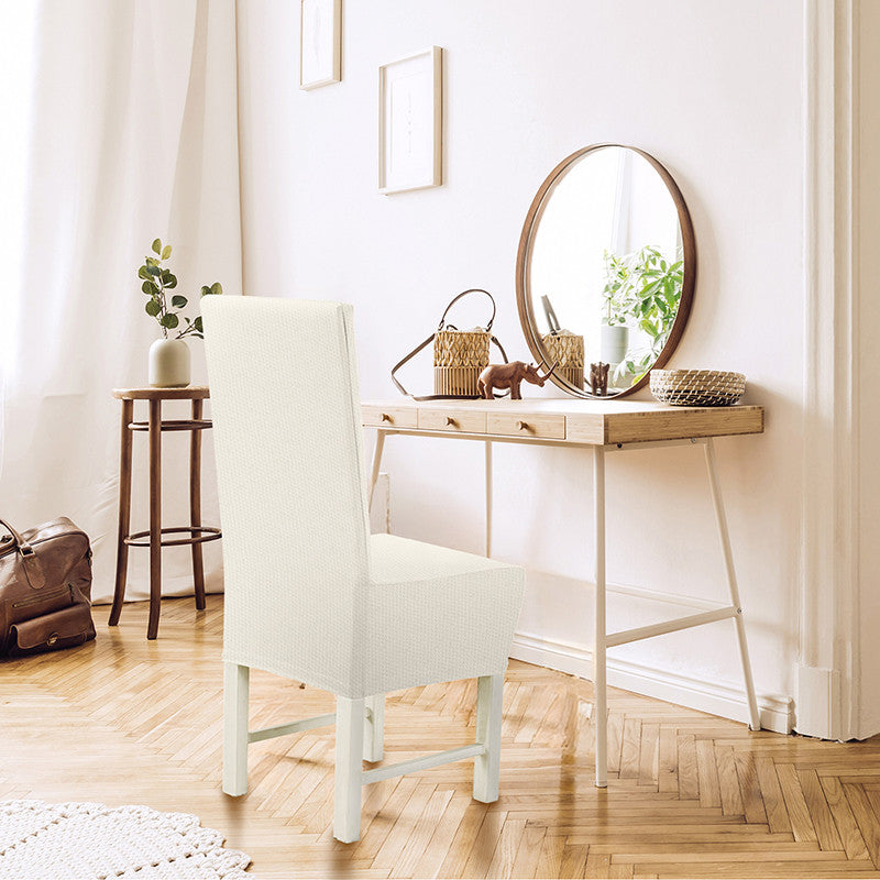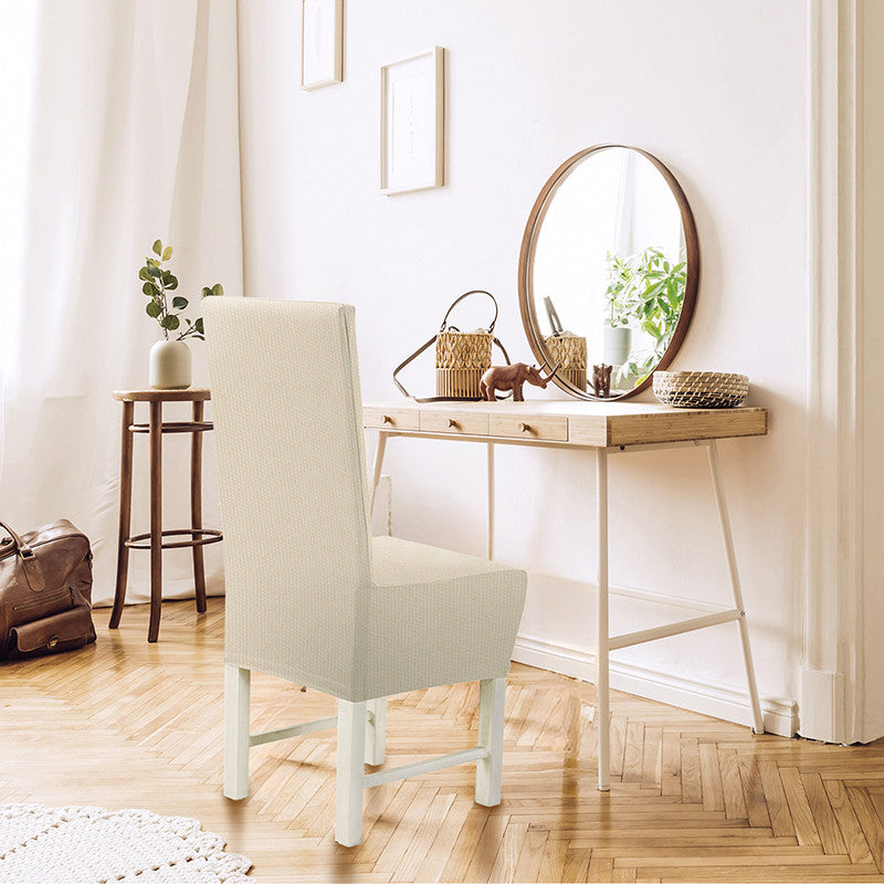 Con questo vestisedia con schienale universale potrai vestire moltissimi modelli di sedia con altezza dello schienale da 40 a 60 cm e seduta da 35 a 50 cm sia in larghezza che in profondità.