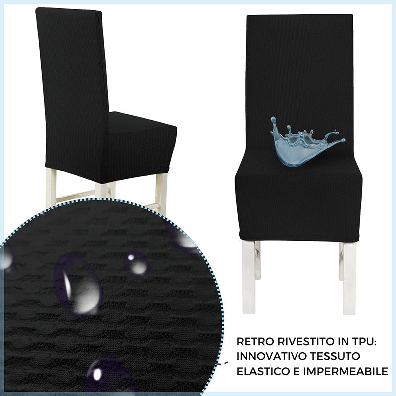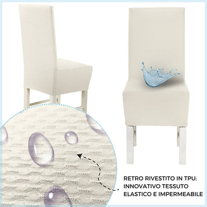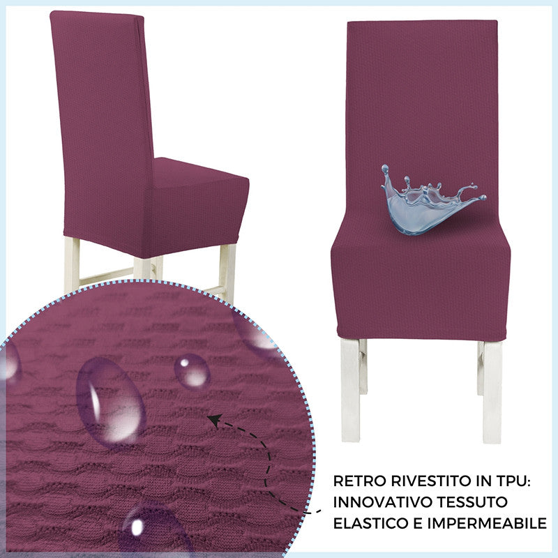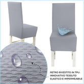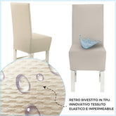 La particolarità di questi vestisedia seduta e schienale è la loro struttura: al di sotto del tessuto è presente uno strato impermeabile che trattiene i liquidi e, evitando la loro dispersione, impedisce che attraversino il tessuto e macchino la sedia sottostante. Prodotto particolarmente adatto anche a chi possiede animali domestici e a famiglie con bambini piccoli.