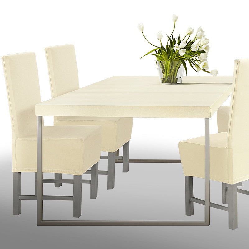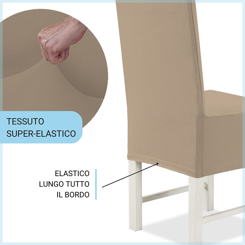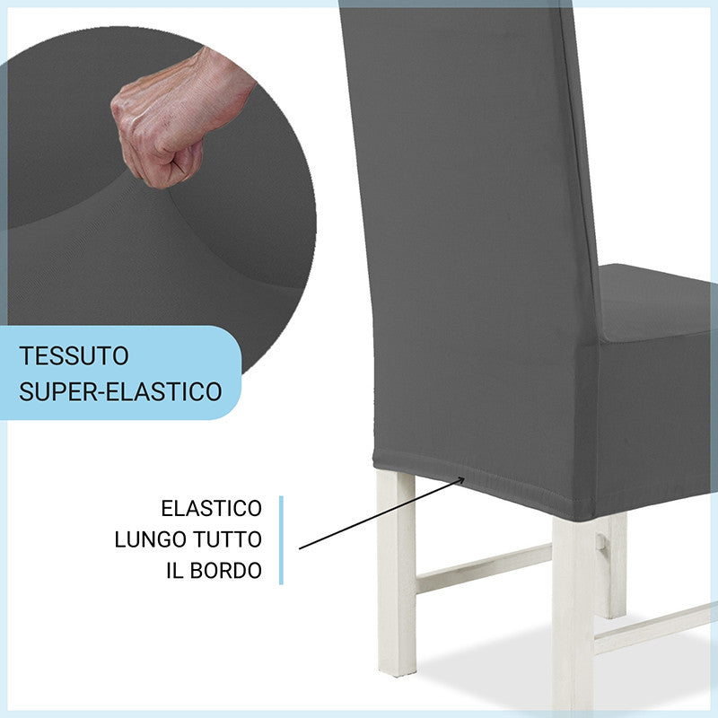 Adatto a tutte le sedie con altezza dello schienale da 40 a 60cm e seduta da 35 a 50 cm sia in larghezza che in profondità. Grazie alla particolare composizione SUPERELASTICA del tessuto vestirai le tue sedie con facilità ed eleganza.
