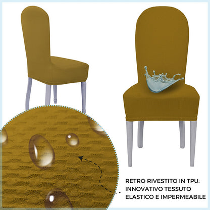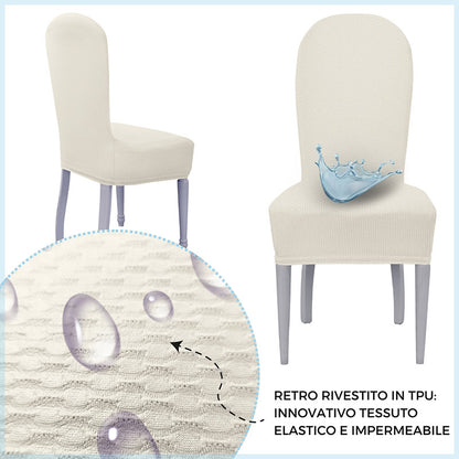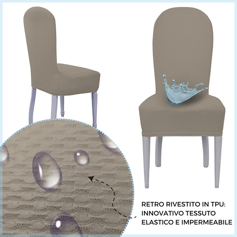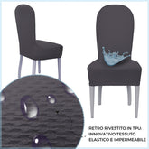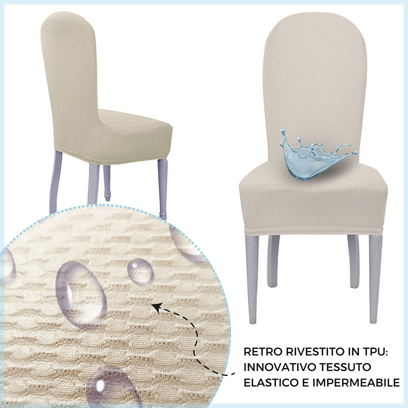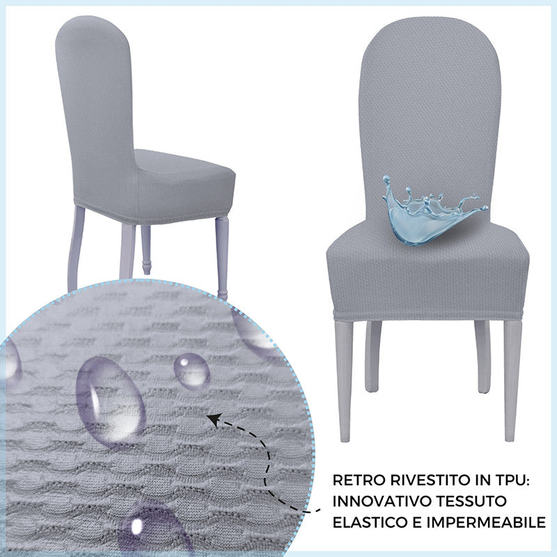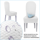 La particolarità di questi vestisedia seduta e schienale è la loro struttura: al di sotto del tessuto è presente uno strato impermeabile che trattiene i liquidi e, evitando la loro dispersione, impedisce che attraversino il tessuto e macchino la sedia sottostante. Prodotto particolarmente adatto anche a chi possiede animali domestici e a famiglie con bambini piccoli.