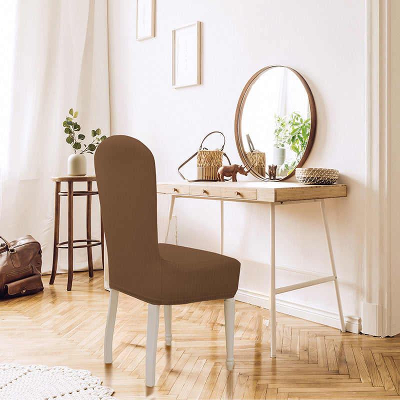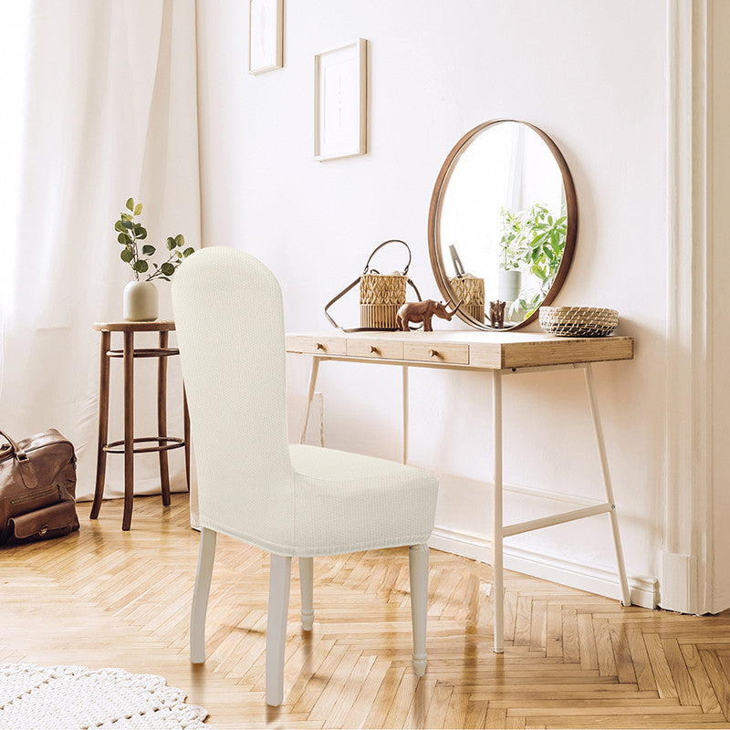 Con questo vestisedia con schienale tondo universale potrai vestire moltissimi modelli di sedia con altezza dello schienale da 40 a 60 cm e seduta da 35 a 50 cm sia in larghezza che in profondità.