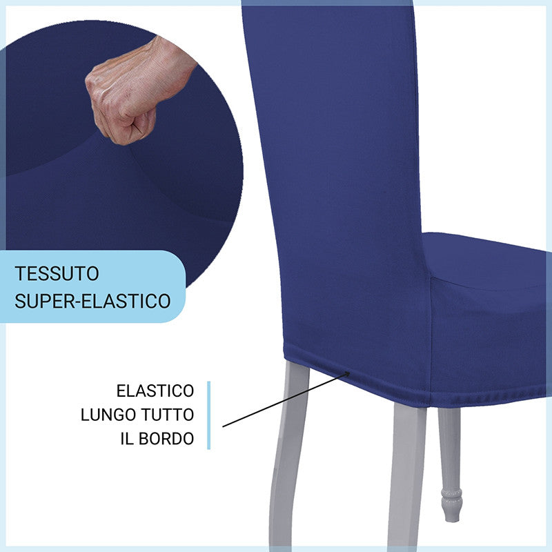 Adatto a tutte le sedie con altezza dello schienale tondo da 40 a 60cm e seduta da 35 a 50 cm sia in larghezza che in profondità. Grazie alla particolare composizione SUPERELASTICA del tessuto vestirai le tue sedie con facilità ed eleganza.